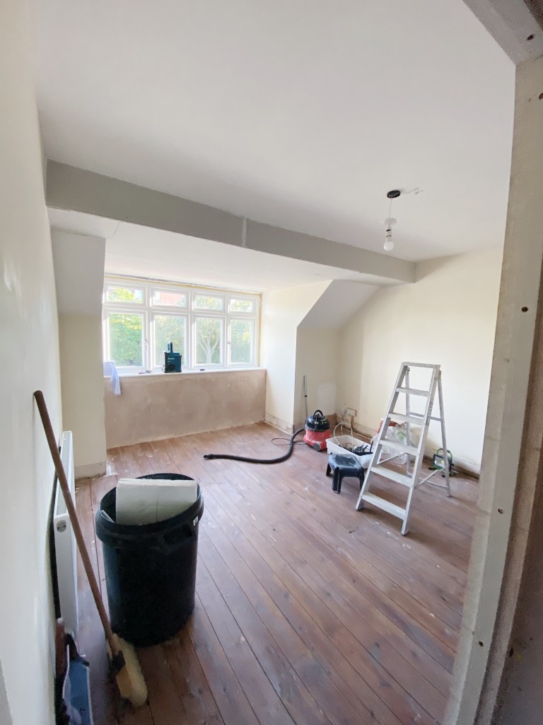 Now, we’re just getting ready the walls ready for painting, the pipes in place to fit the new radiator and everything sorted in time for the carpets to be fitted. Exciting times ahead!