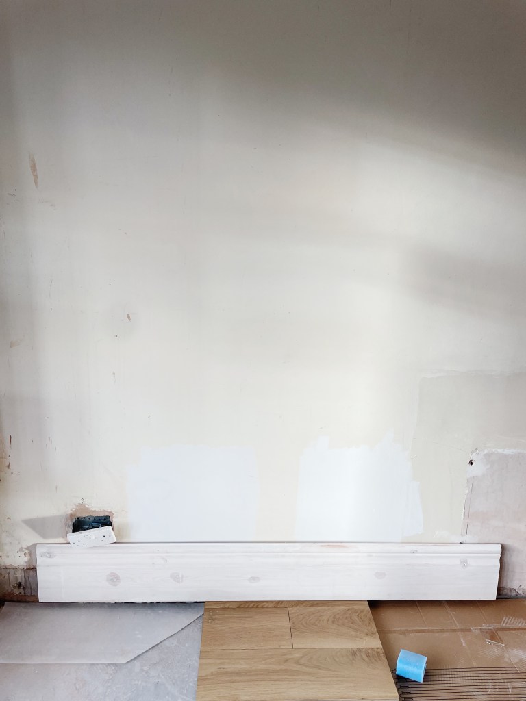 We’ve even started on the paint swatches; left is White Mist and right is White Cotton (both by Dulux).