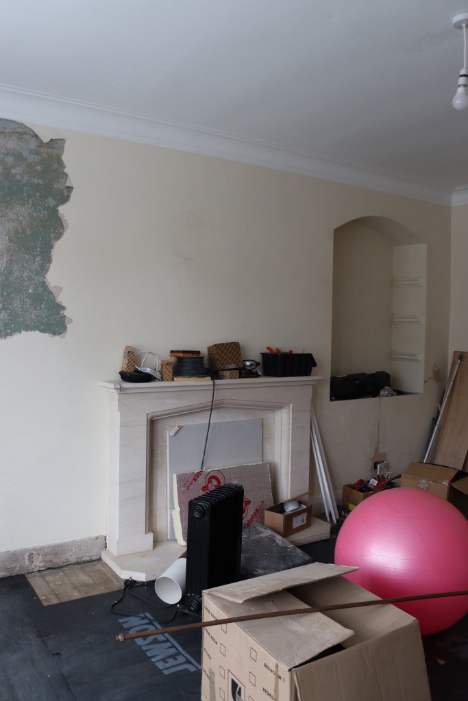 In other parts of the house we’ve just started taking the plaster off the wall in the sitting room. This will be our dark, moody and ‘adult’ space so isn’t a priority right now but, when it’s raining and we have a few hours spare, this is the room we’re focused on getting ready for decoration. It, like every other room in the house, needs an awful lot of work done to it!