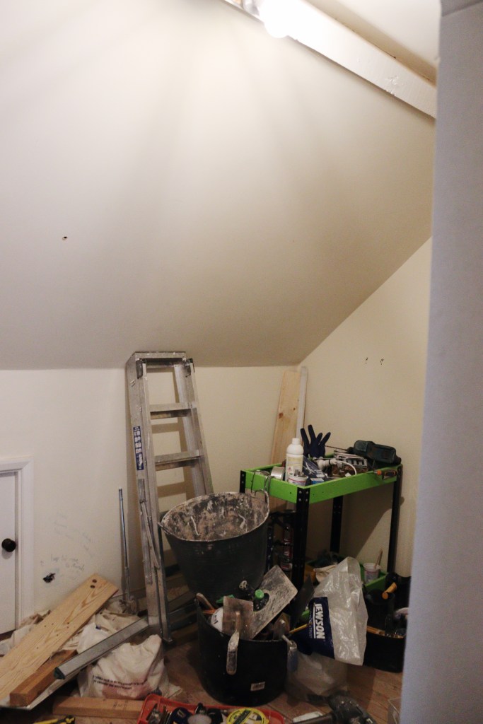 There’s so much work to do in here to take it from what looks like a dark and dingy storage space and turn it into a light and spacious bathroom. This bathroom will only have a shower in it, our bath will be in our downstairs bathroom.