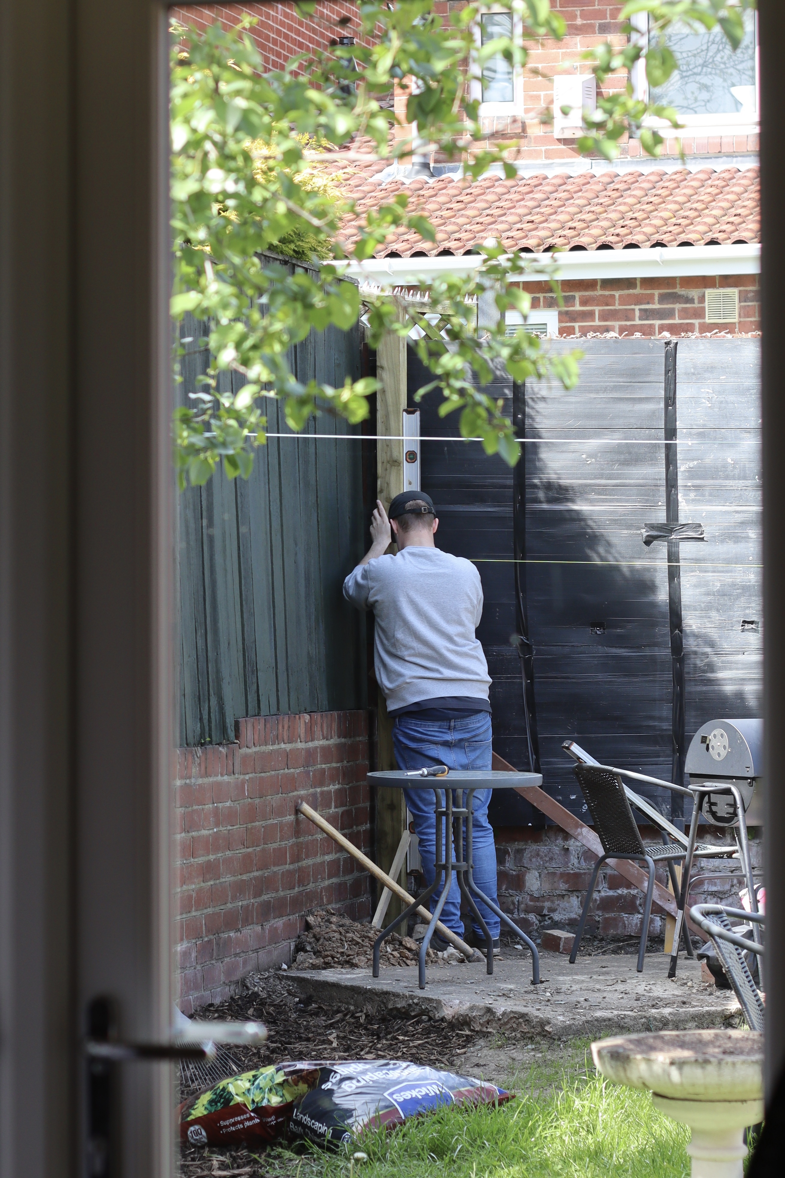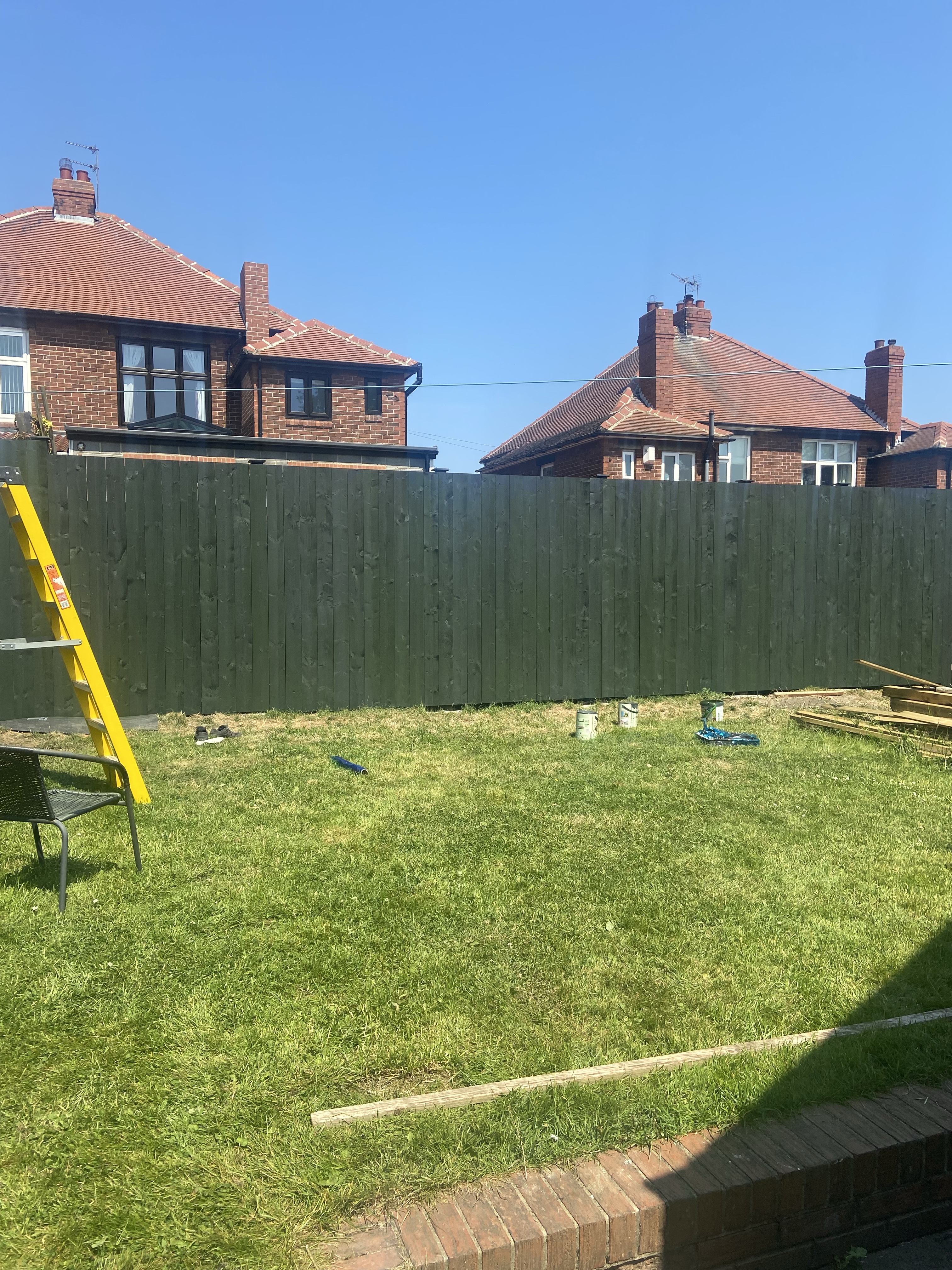 In May, with the warmer weather, we spent a lot of time clearing the garden and digging the fence posts. I also painted the existing fence green over the May bank holidays.
