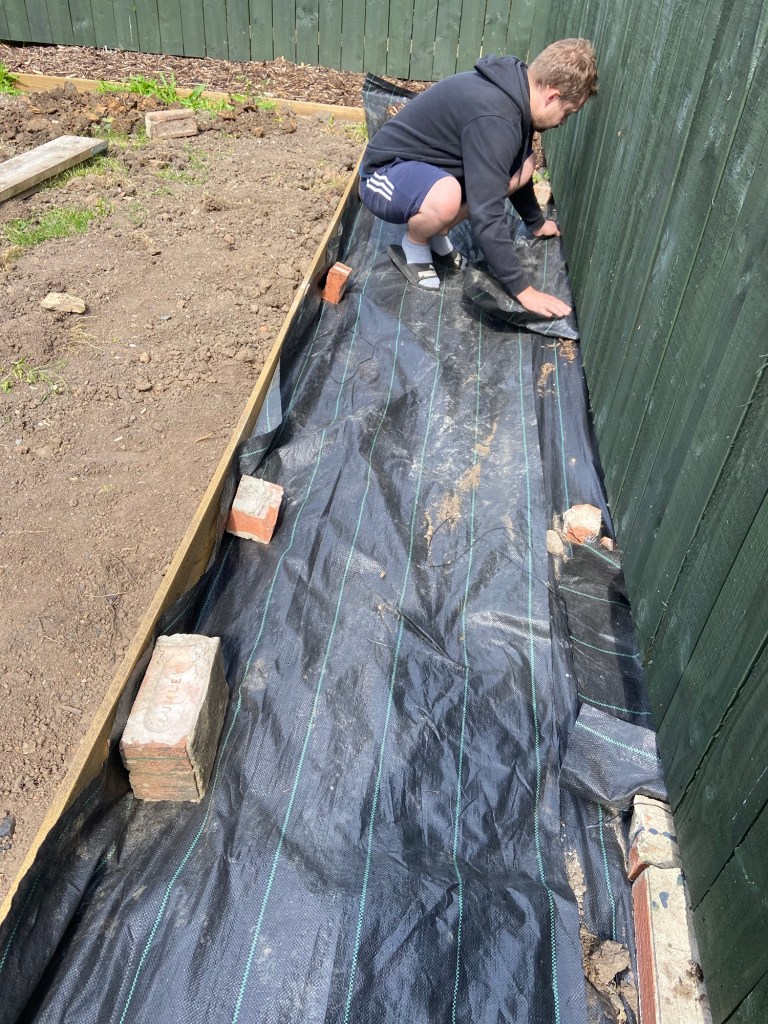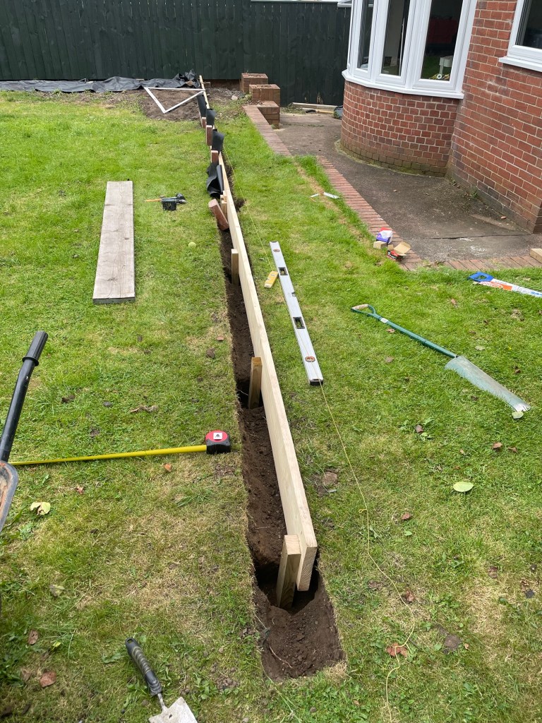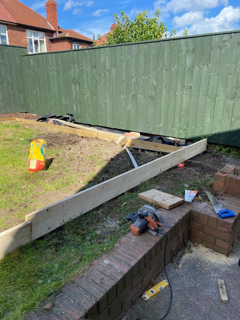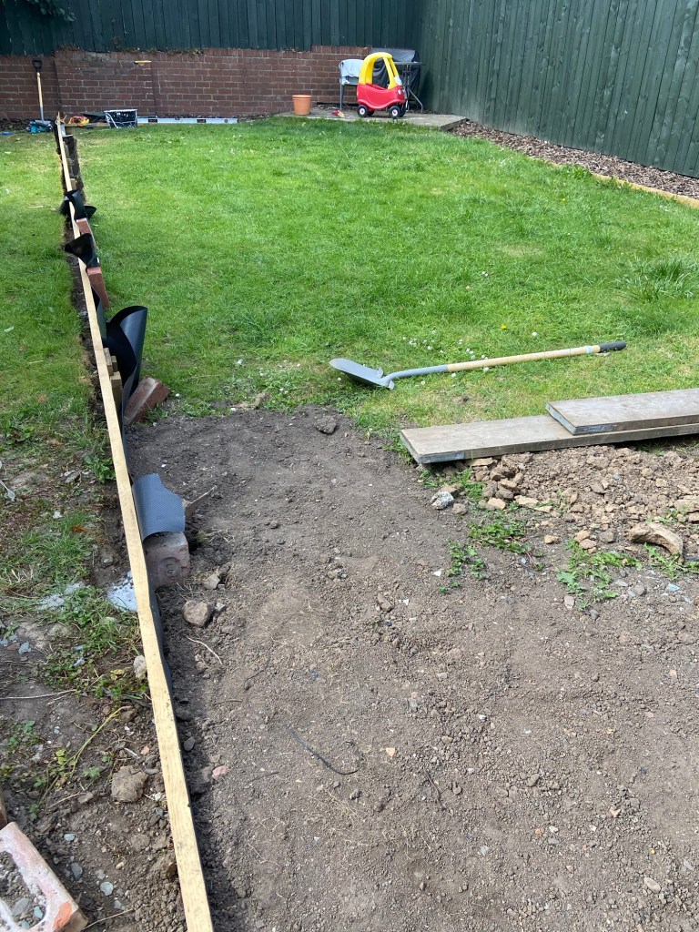 Because of the nice weather, in August we continued with, and finished, the border/mini retaining wall on the top part of the garden…