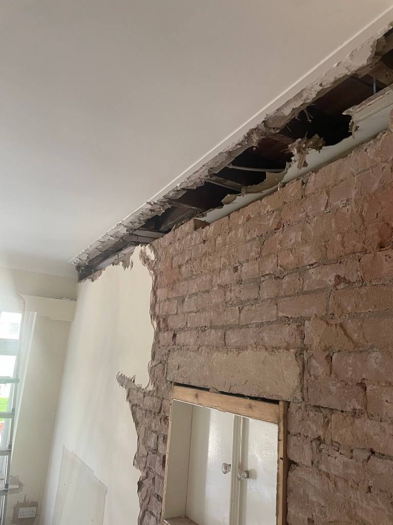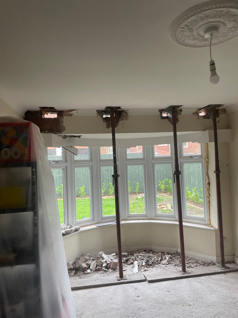 Meanwhile, at the back of the house, the brickwork above the bay window started to come out too, ready for a new lintel and roof.
