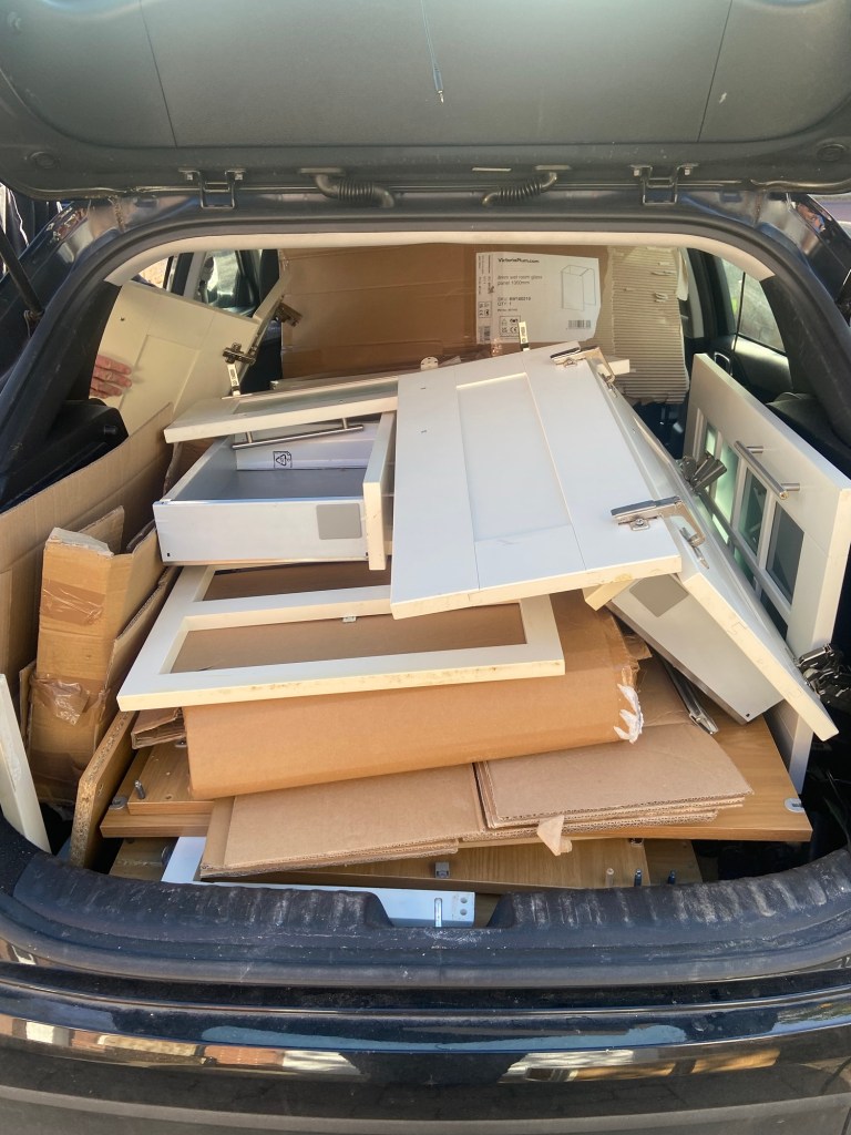 In preparation for the building work we had scheduled to begin at the end of October, we started to take out parts of the kitchen. We crammed the car full to the brim twice with the cabinets and took them to the skip (I do love a good skip trip).