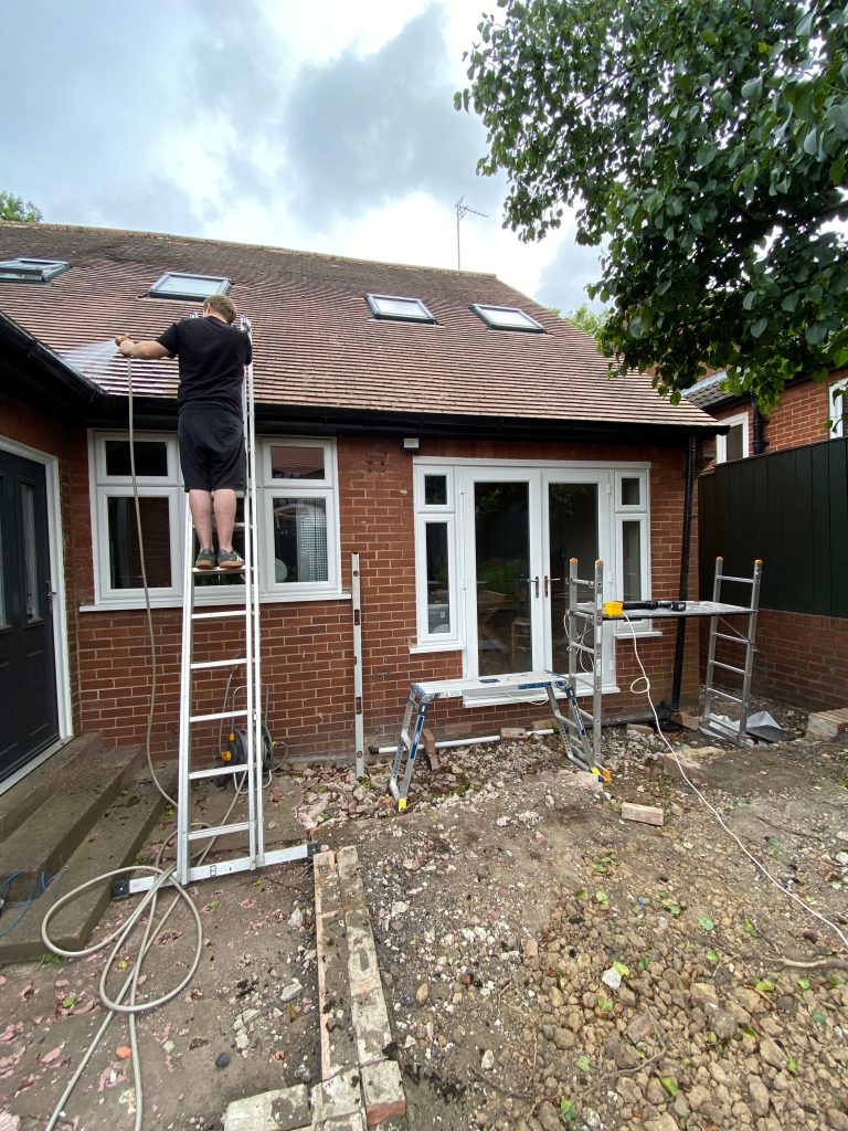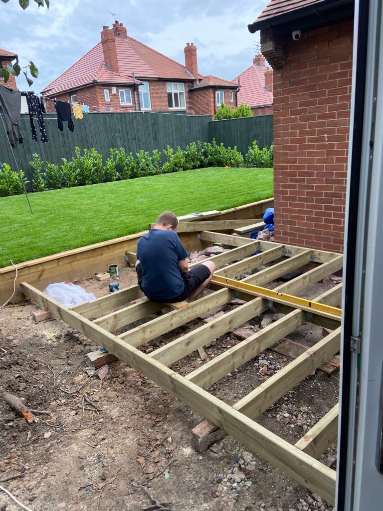 Once the turf was laid, David made a start on the decking area which is, again, a massive job. There were a few things which needed doing before he could actually start on framing the deck out, such as moving the downpipe.