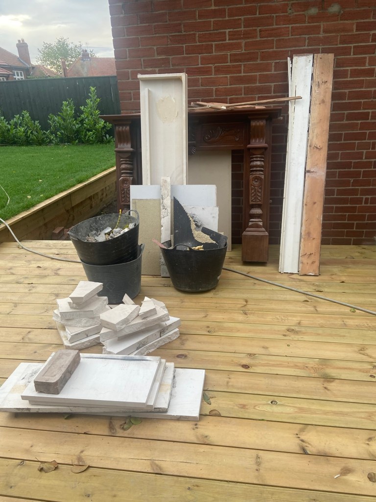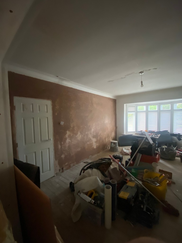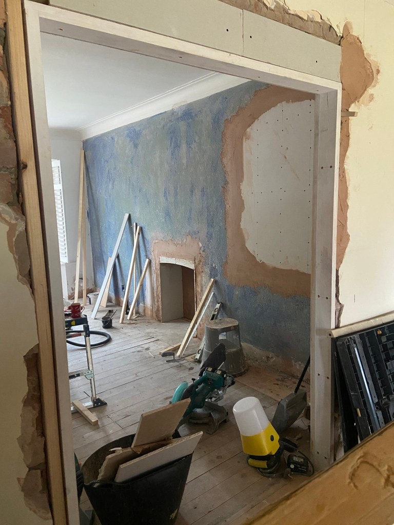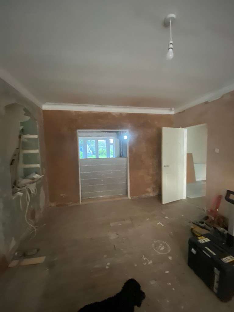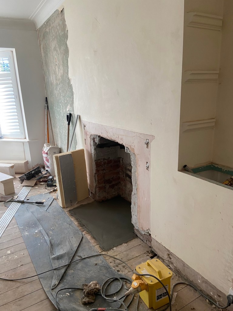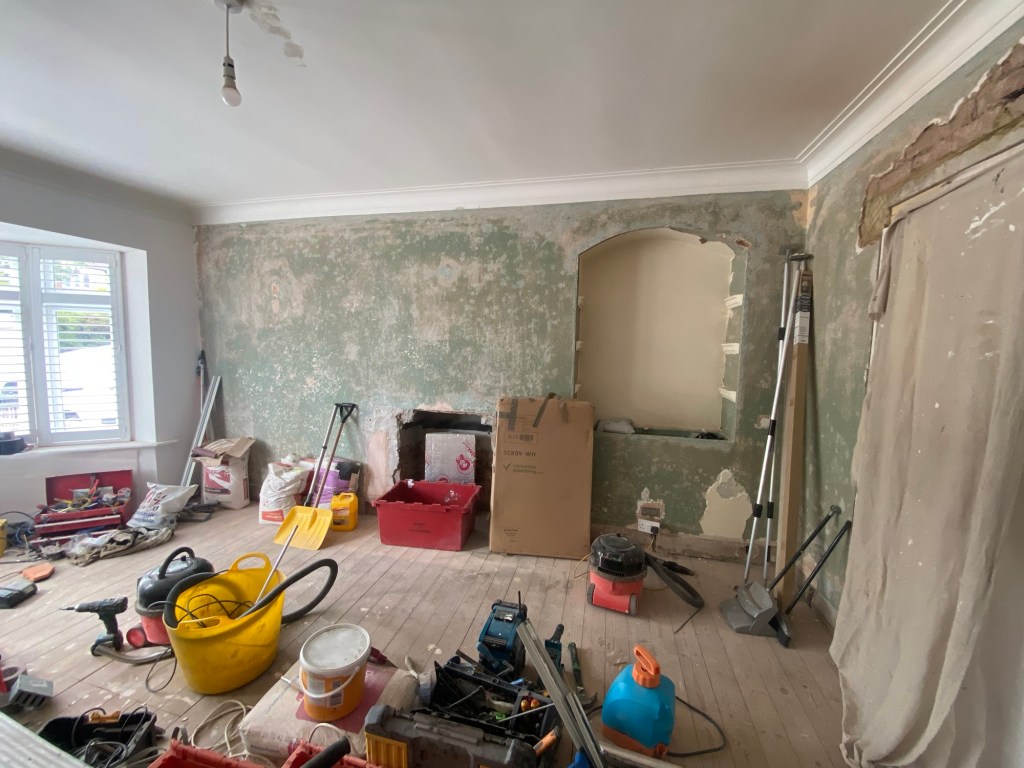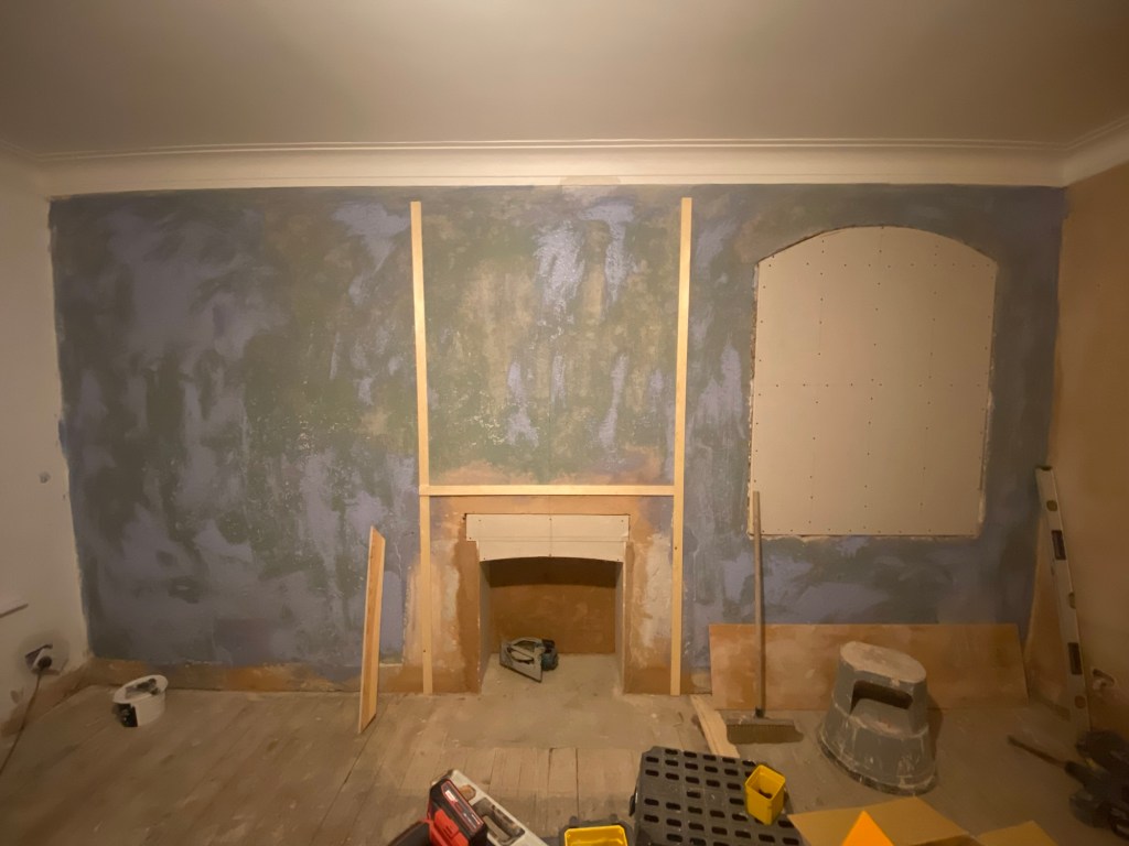 With the old fire gone, my dad got started on prepping the room for plastering, this meant taking off all the old plaster from the wall as it was already cracking and falling off…